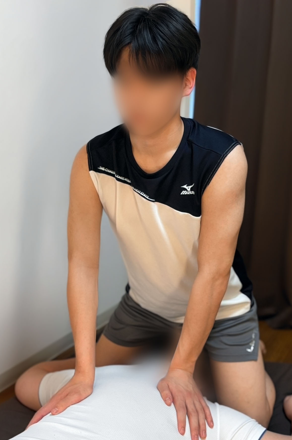 弱冠20歳(オープン時点)という若さながら、水泳、ゴルフ、バレー、野球など様々なスポーツ経験で培ったセルフケアに関する豊富な知識を持っていますので、身体のお悩みに合わせたコンディショニングストレッチをゲイマッサージとしてご体感いただけます。